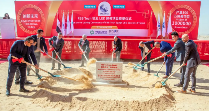 今年2月,海信集团埃及电视工厂项目举行奠基仪式,根据规划,工厂一期建设将包括3条模组整机生产线,具备年产163.5万台显示设备的能力,覆盖32英寸至75英寸的电视和显示器产品。此外,工厂还计划进行注塑、钣金等原材料进口及本地化生产。二期工程将进一步扩展至冰箱、空调等白电产品制造。同月,海信与阿尔及利亚Condor集团签署协议,在阿尔及利亚建设非洲最大的家电生产产业园。7月,海信宣布,工厂正式启动首次大规模出口业务,向埃及和突尼斯等中东及北非(MENA)战略市场出口超过5000台本地生产的电视和洗衣机。